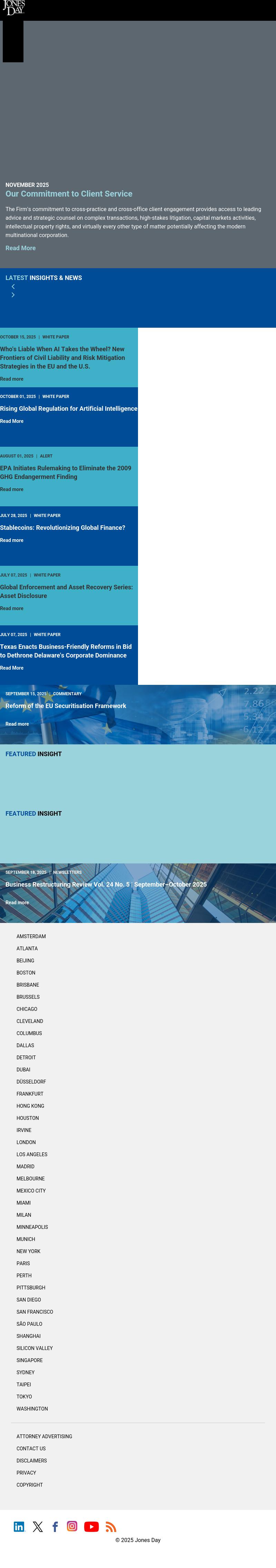 Jones Day Ranked among the world's most integrated law firms and best in client service, Jones Day has locations in centers of business and finance throughout the world.
